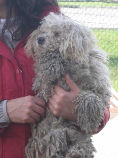 When we saw Bamby, we were speechless... The hair was at least 15cm long. Unbeliveble, he couldn't not see anything. He could hardly move. First thing we did, we cut the fringe. At least now he can see. More to come later. He was so afraid, the little boy, every noise made him shake... This sweet boy needs a calm and quiet home and all the love in the world.